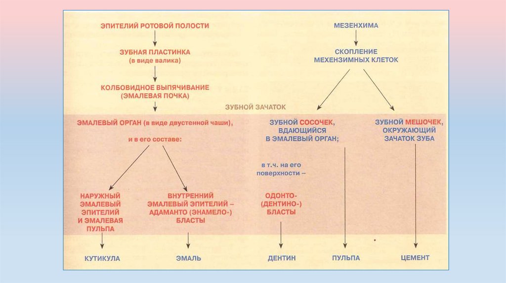 зуба мезенхимные клетки дифференцируются сначала в преодонтобласты, а затем одонтобласты, или дентинобласты. Этот