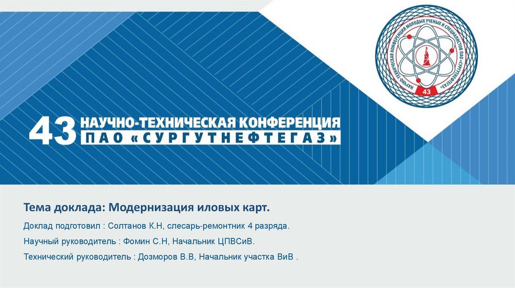 Тема доклада: Модернизация иловых карт.Доклад подготовил : Солтанов К.Н, слесарь-ремонтник 4 разряда.