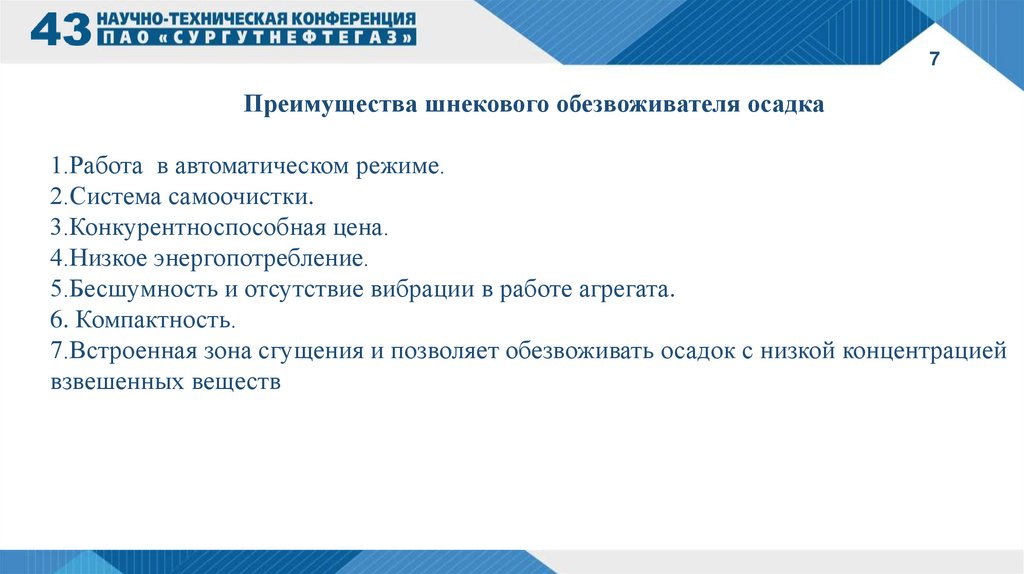 7.Встроенная зона сгущения и позволяет обезвоживать осадок с низкой концентрацией