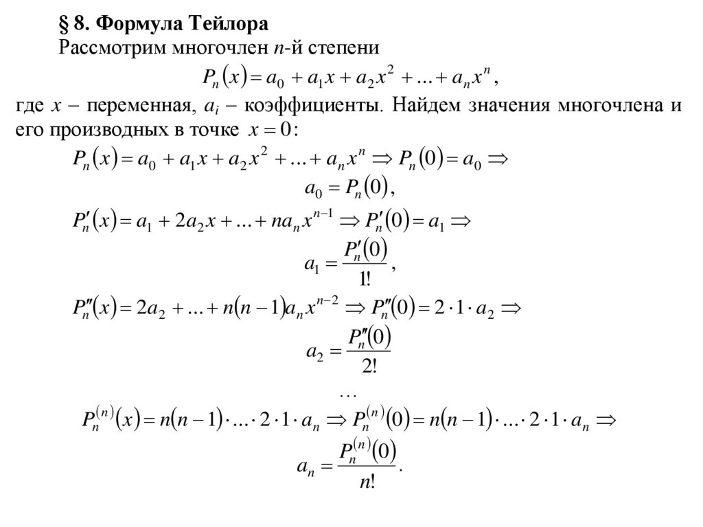 § 8. Формула ТейлораРассмотрим многочлен n-й степени