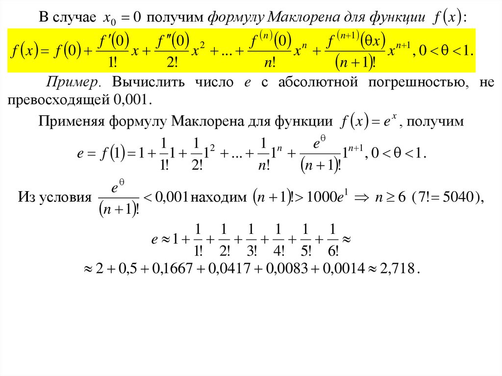 В случае x 0 0 получим формулу Маклорена для функции f x :f 0