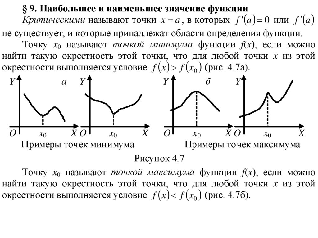 этой точке функция принимает наибольшее (наименьшее) значение.