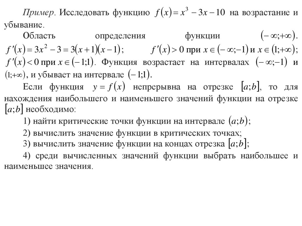 нахождения наибольшего и наименьшего значений функции на отрезке