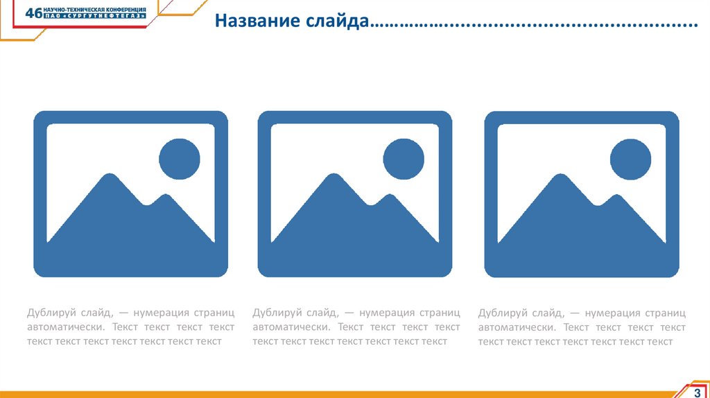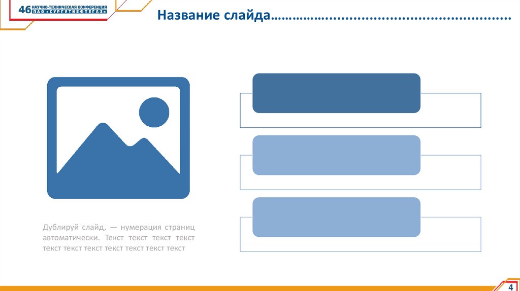Название слайда……………..............................................Дублируй слайд, — нумерация страниц автоматически. Текст