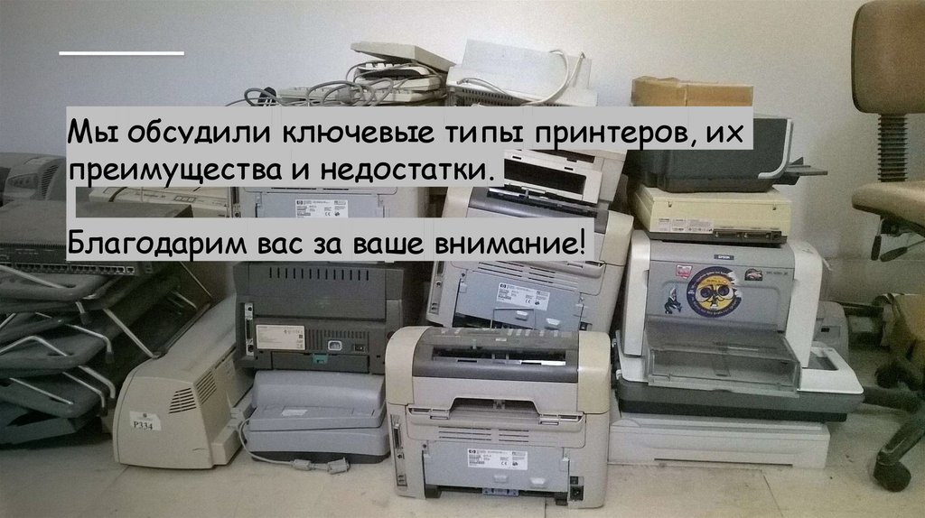 Мы обсудили ключевые типы принтеров, ихпреимущества и недостатки.