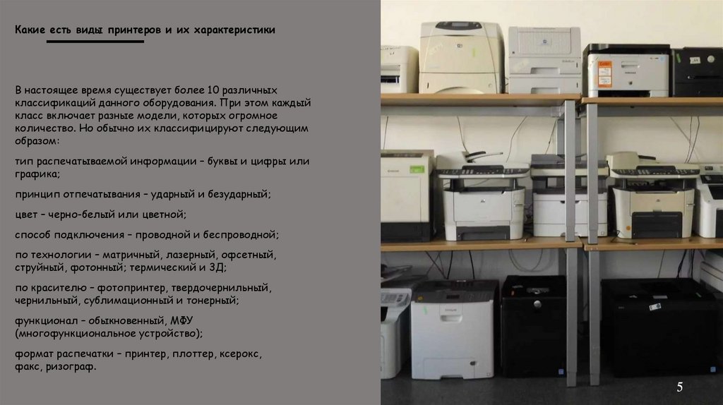 Какие есть виды принтеров и их характеристикиВ настоящее время существует более 10 различных
