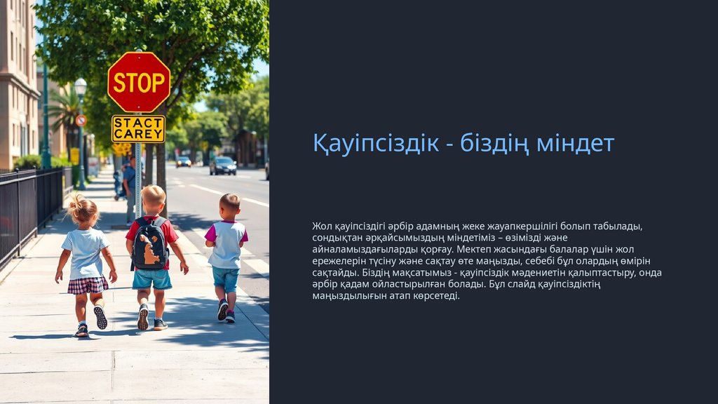 Қауіпсіздік - біздің міндетЖол қауіпсіздігі әрбір адамның жеке жауапкершілігі болып табылады,