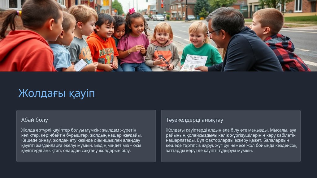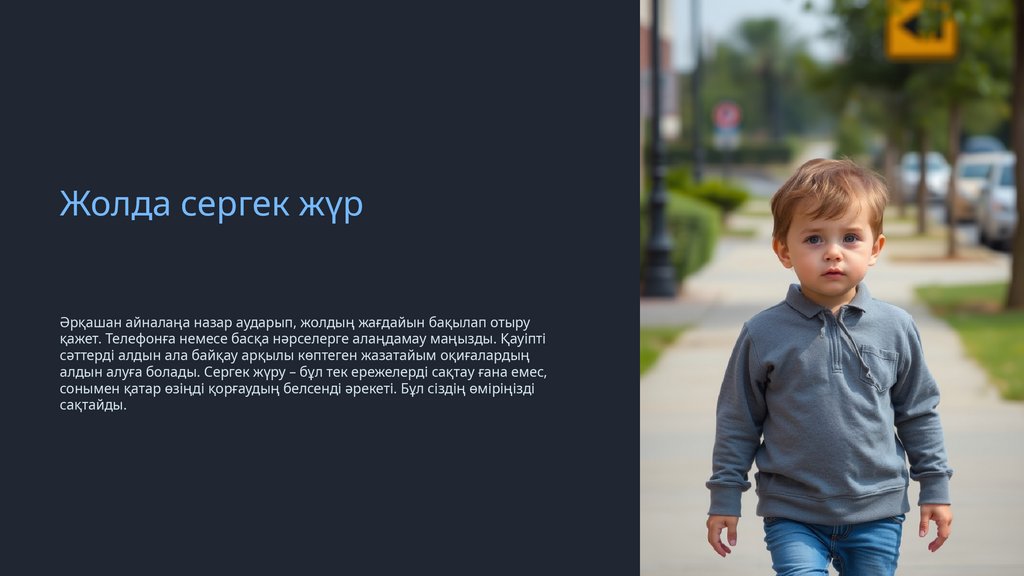 Жолда сергек жүрӘрқашан айналаңа назар аударып, жолдың жағдайын бақылап отыру