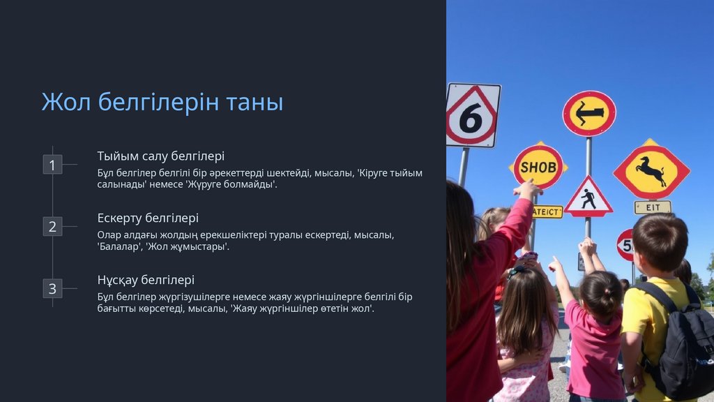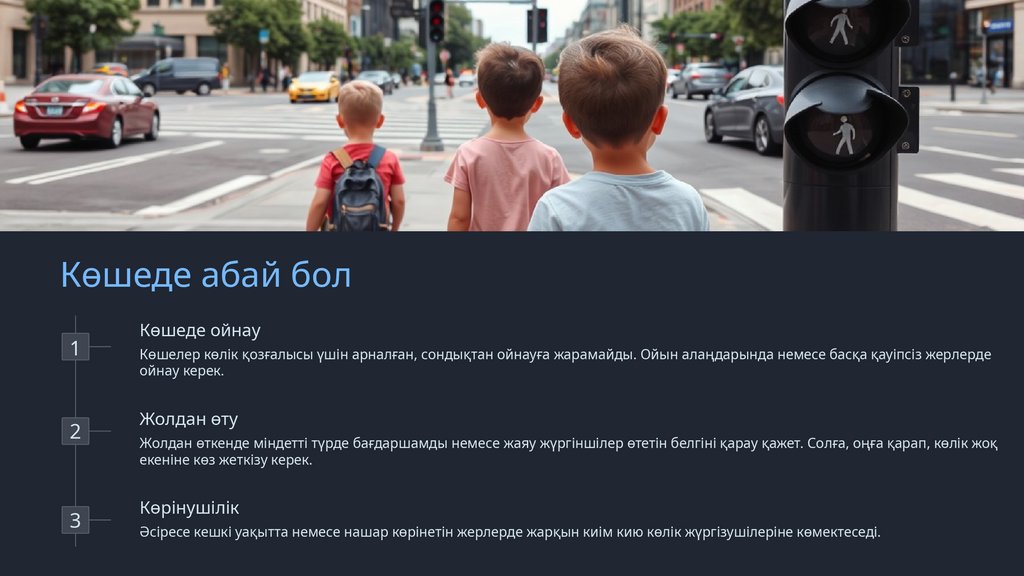 тиіс. Көшеге шықпас бұрын жол белгілерін, бағдаршамның