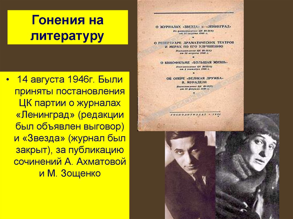 • 4 сентября 1946 г. Выходитпостановление ЦК партии о