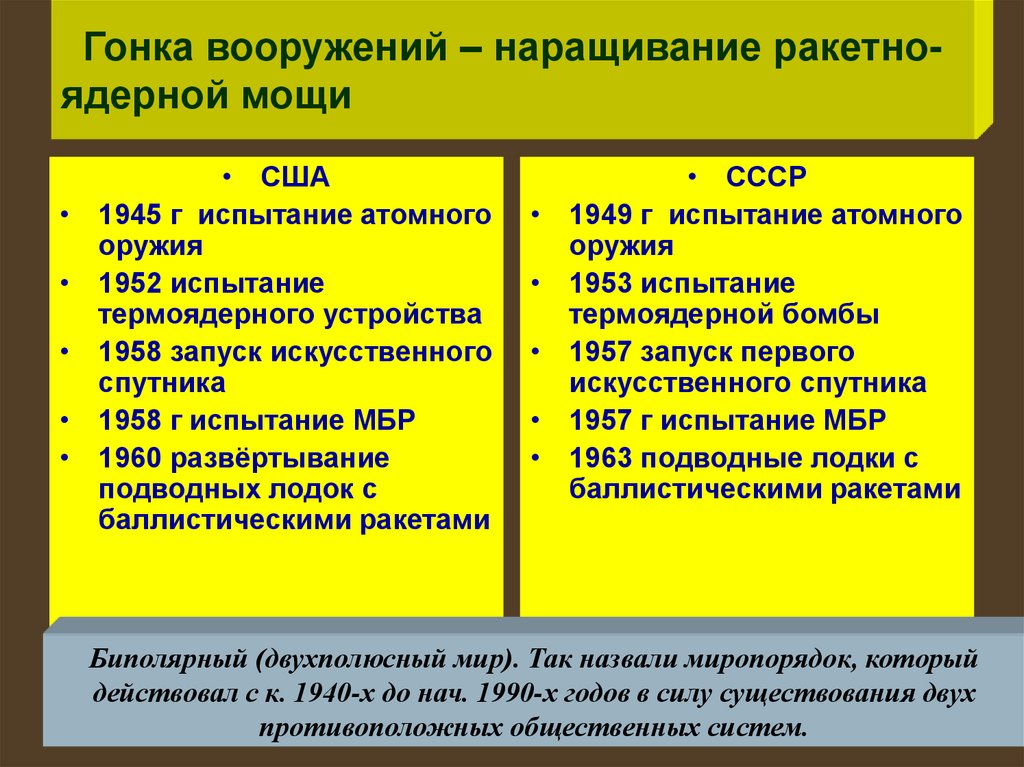 Гонка вооружений – наращивание ракетноядерной мощи• США