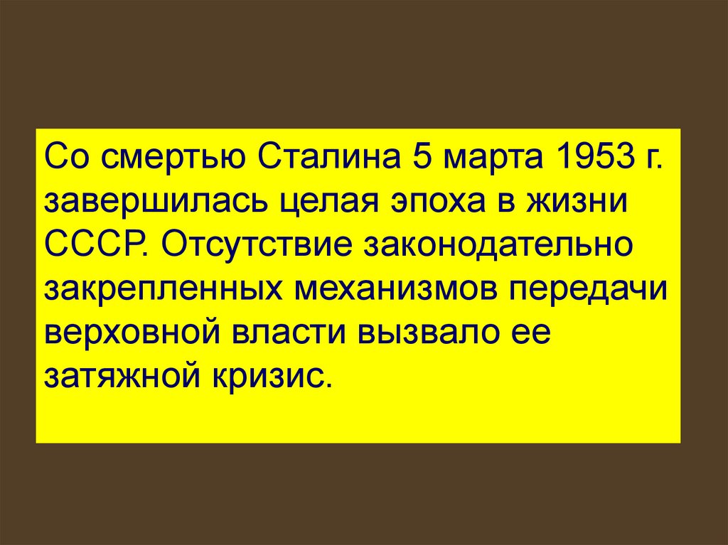 Со смертью Сталина 5 марта 1953 г.завершилась целая эпоха в жизни