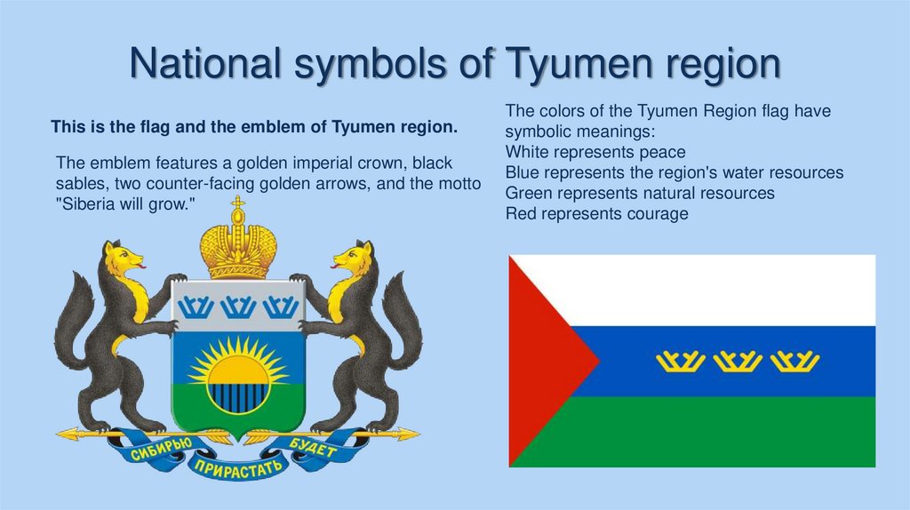 National symbols of Tyumen regionThis is the flag and the emblem of Tyumen region.