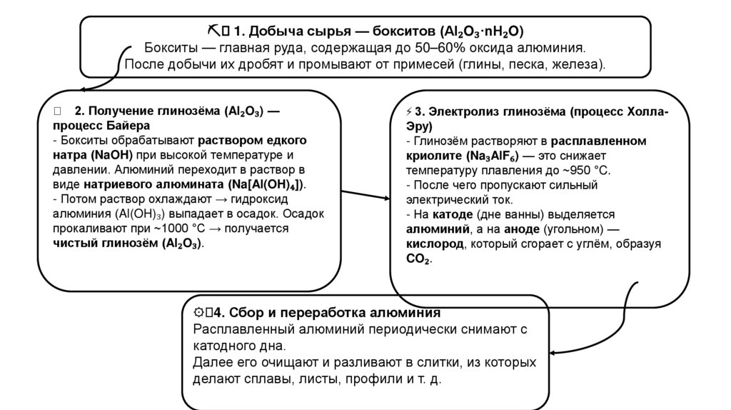 ⛏ 1. Добыча сырья — бокситов (Al₂O₃·nH₂O)Бокситы — главная руда, содержащая до 50–60% оксида алюминия.