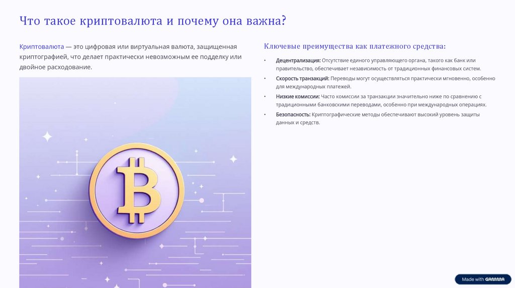 Что такое криптовалюта и почему она важна?Криптовалюта — это цифровая или виртуальная валюта, защищенная