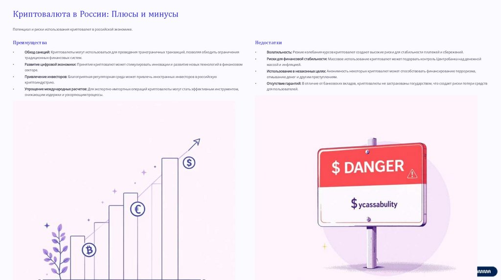 Криптовалюта в России: Плюсы и минусыПотенциал и риски использования криптовалют в российской экономике.