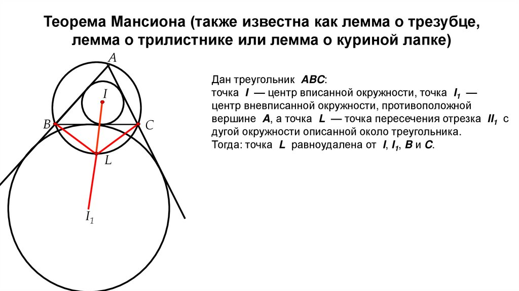 Теорема Мансиона (также известна как лемма о трезубце,лемма о трилистнике или лемма о куриной лапке)