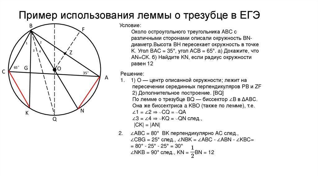5. Свойства трапеции: отрезок, соединяющий середины диагоналей.