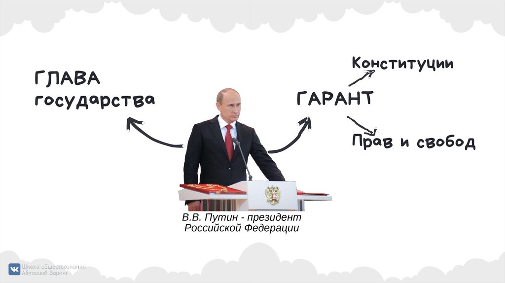 глава 4 Конституции России• выступает гарантом Конституции, конституционных прав и свобод человека и гражданина,