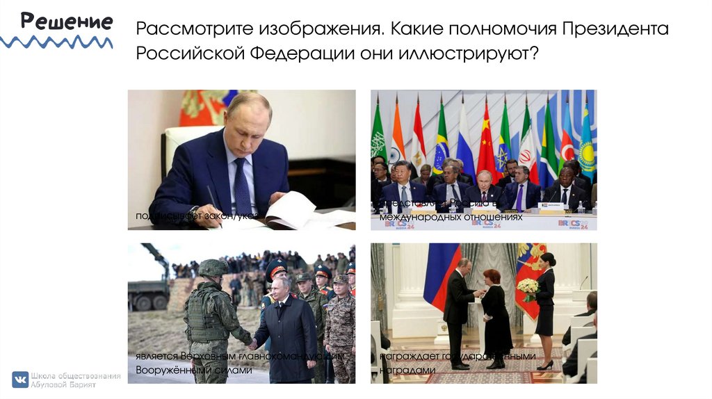 РешениеРассмотрите изображения. Какие полномочия Президента