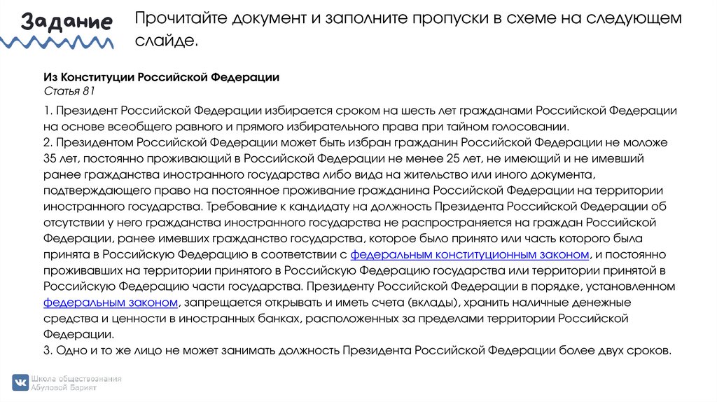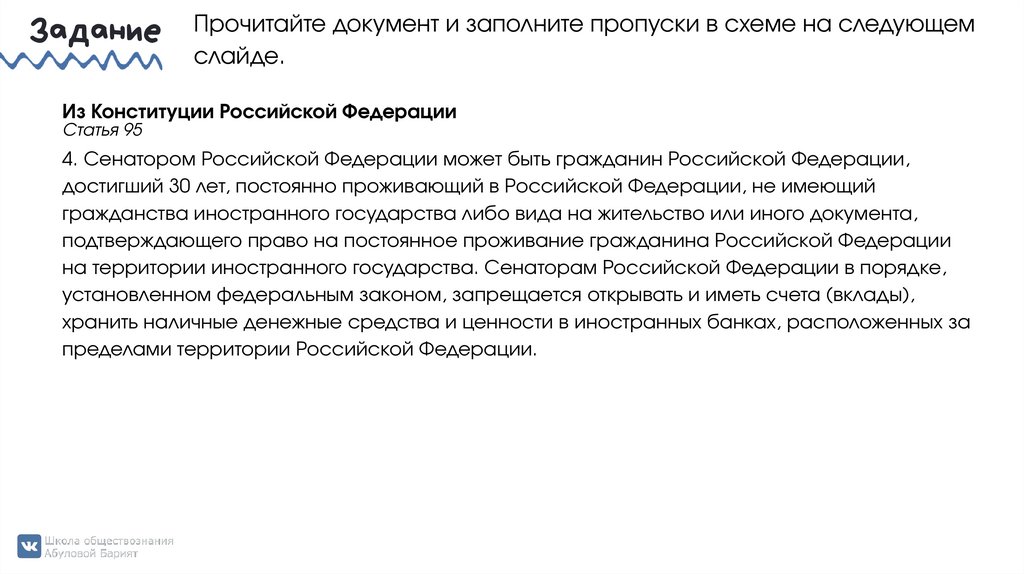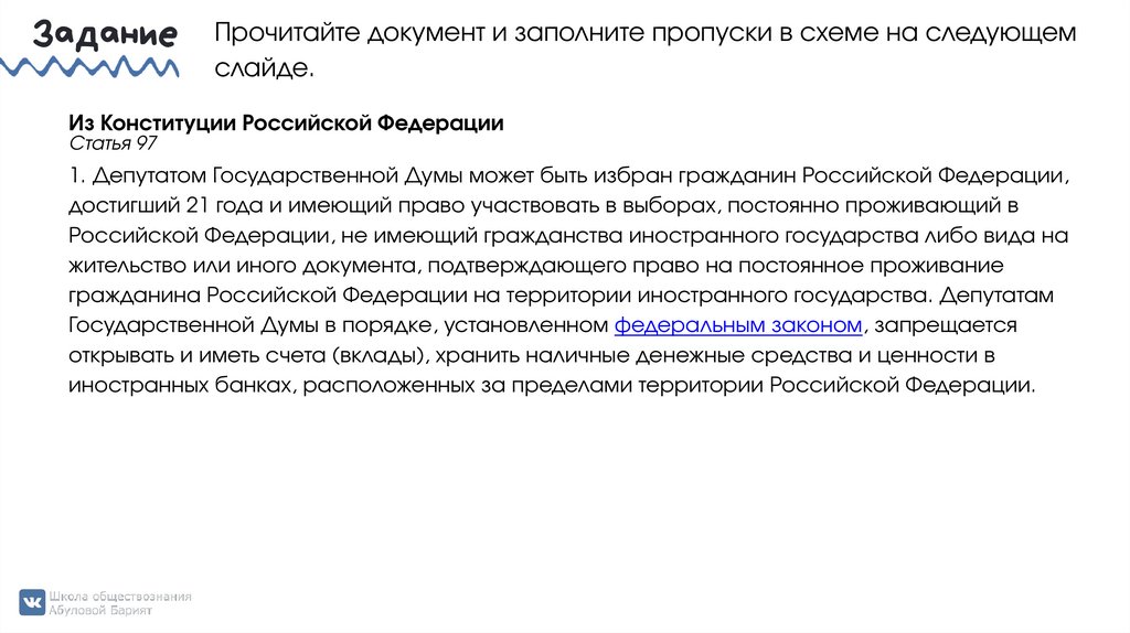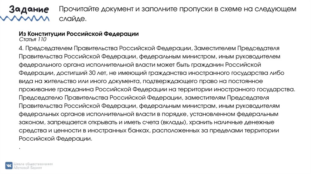 ЗаданиеПрочитайте документ и заполните пропуски в схеме на следующем