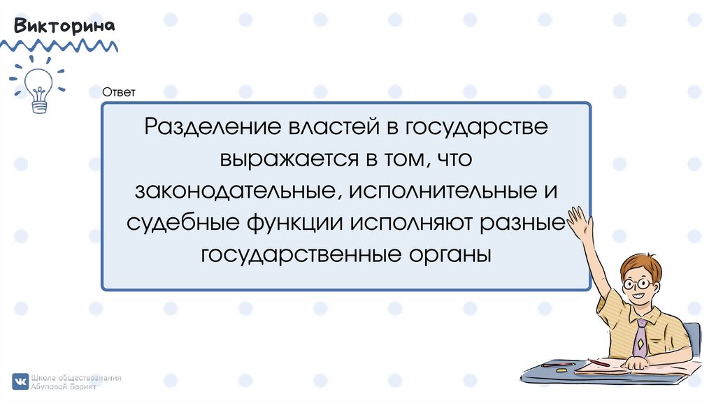 А. Разделение властей предполагает самостоятельность исполнительной, законодательной и