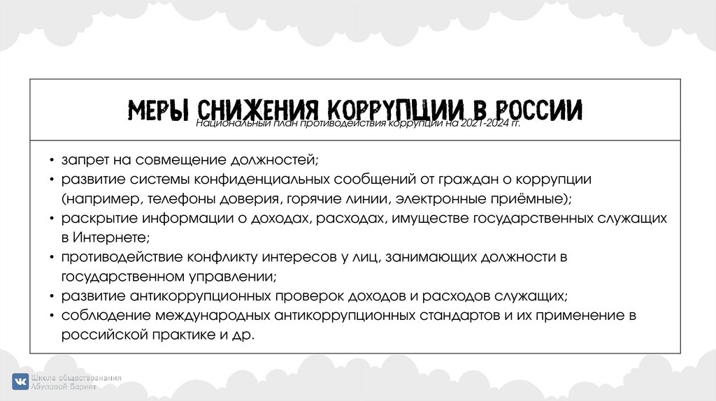 Национальный план противодействия коррупции на 2021-2024 гг.• запрет на совмещение должностей;