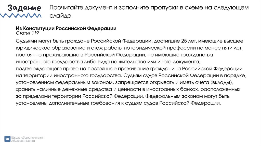 ЗаданиеПрочитайте документ и заполните пропуски в схеме на следующем