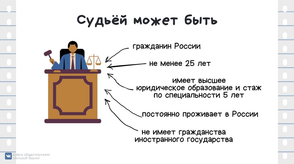 Судьями могут быть граждане Российской Федерации, достигшие 25 лет, имеющие высшее