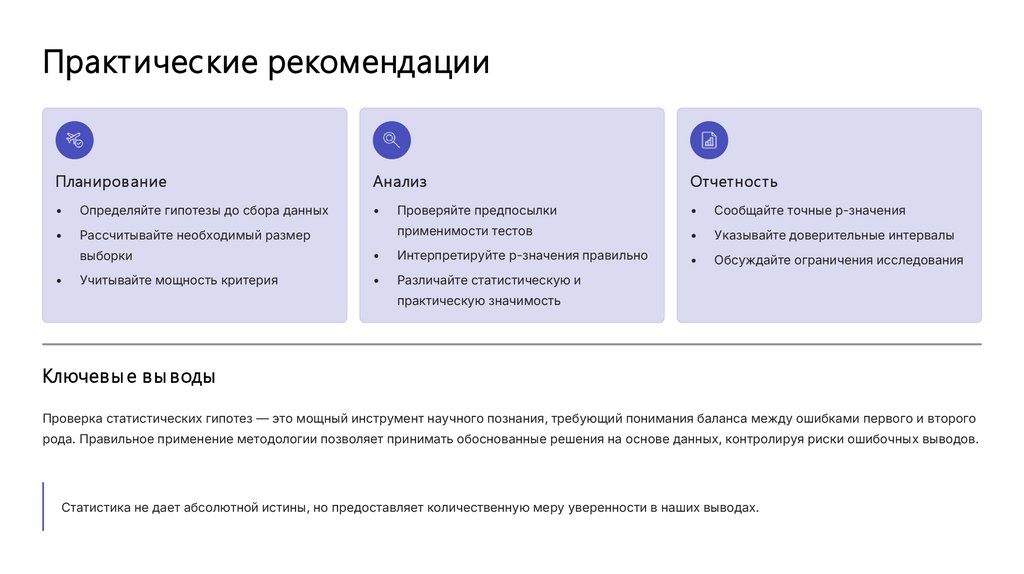 рода. Правильное применение методологии позволяет принимать обоснованные решения на основе данных, контролируя риски ошибочных выводов.