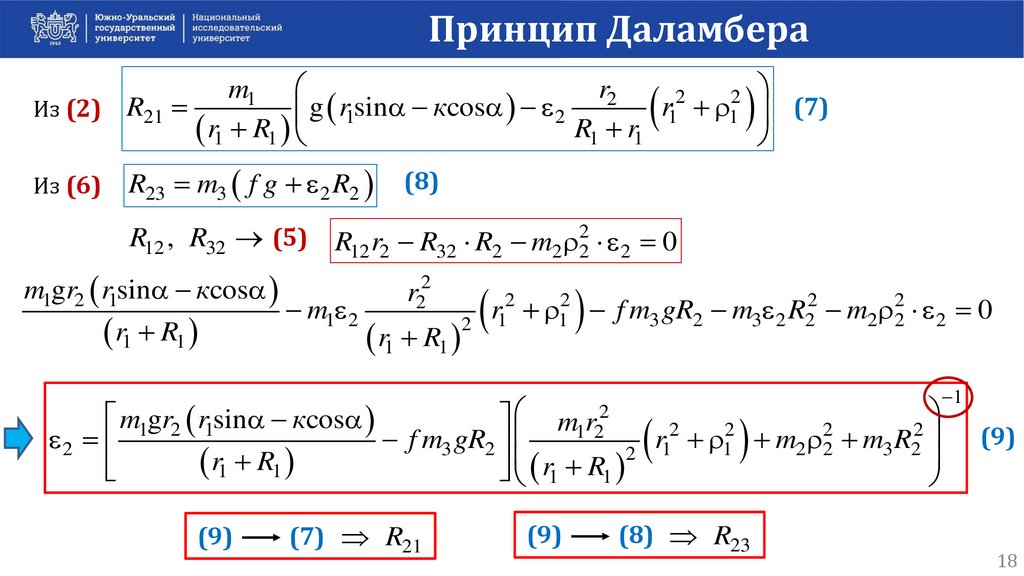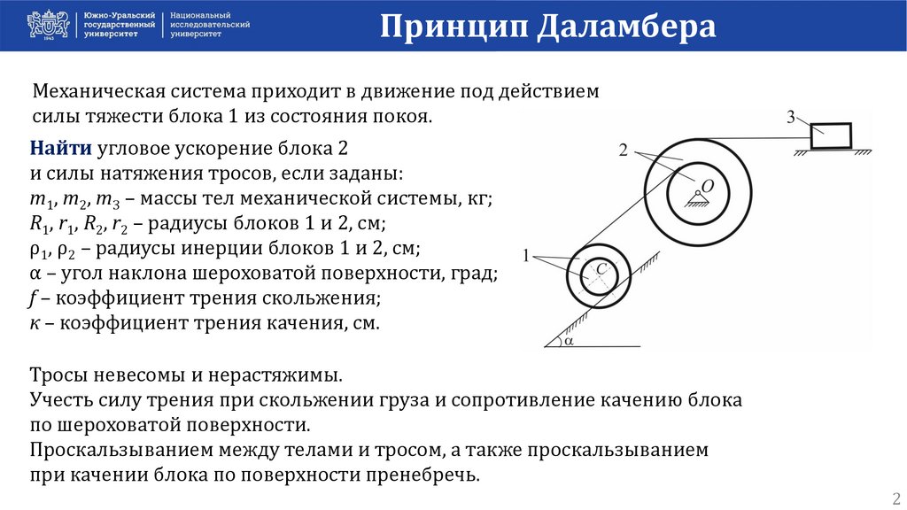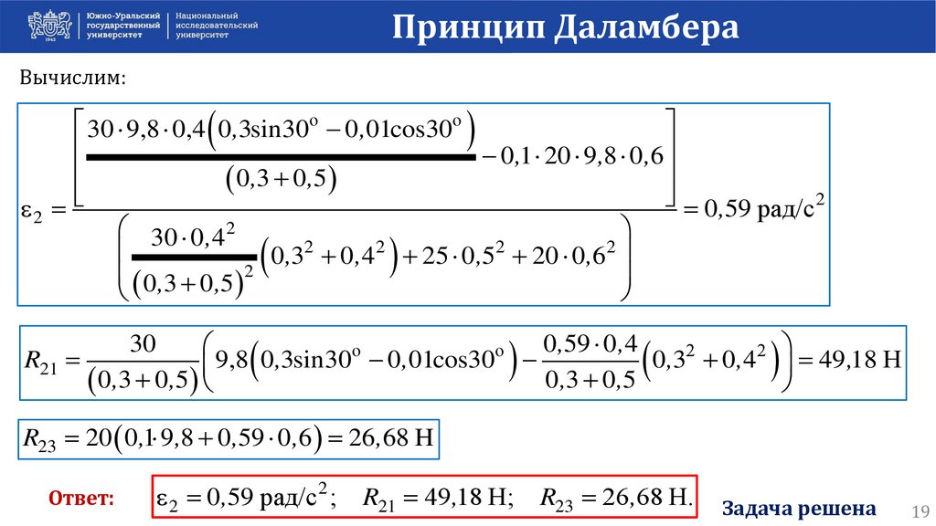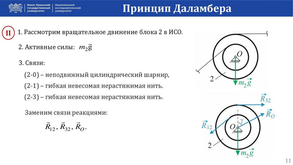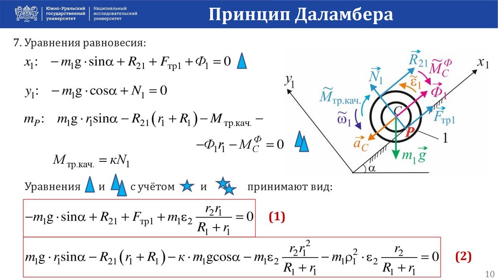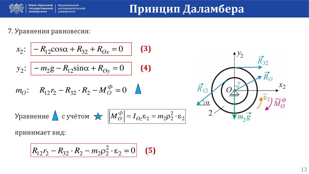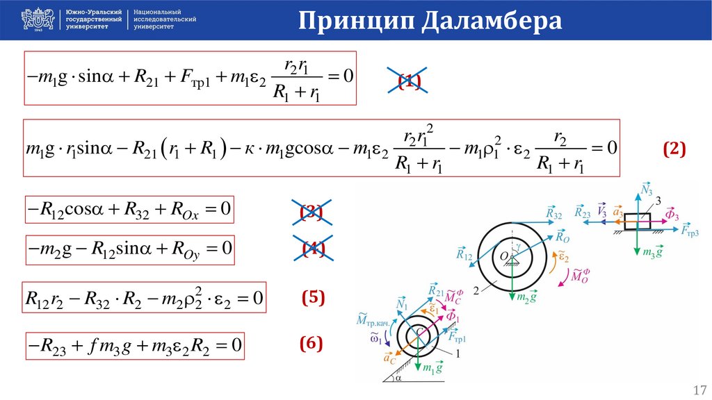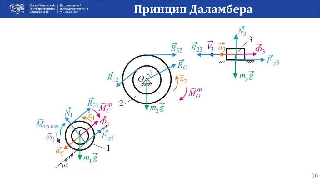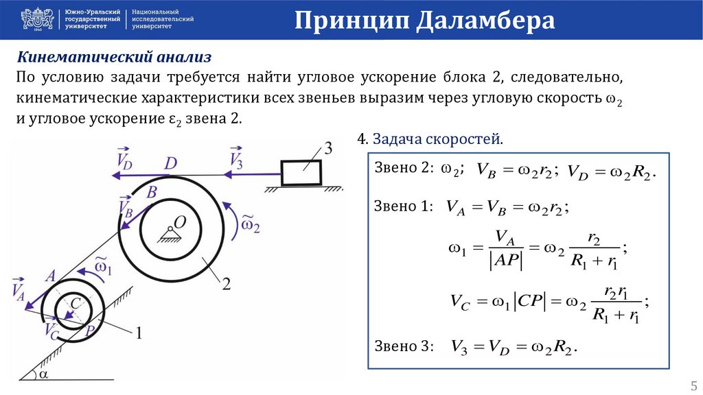 Принцип Даламбера4. Для решения задачи применяем принцип Даламбера: