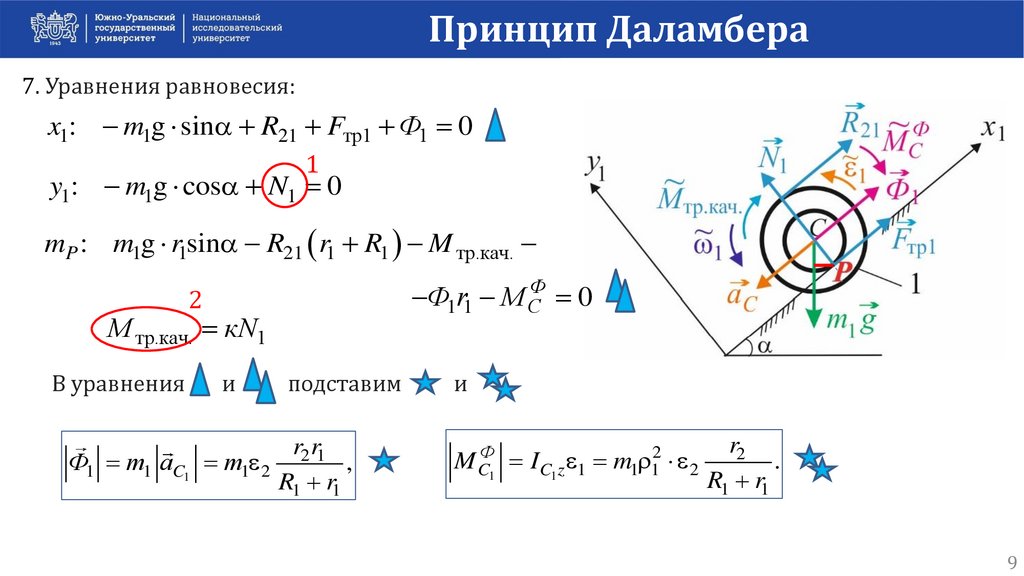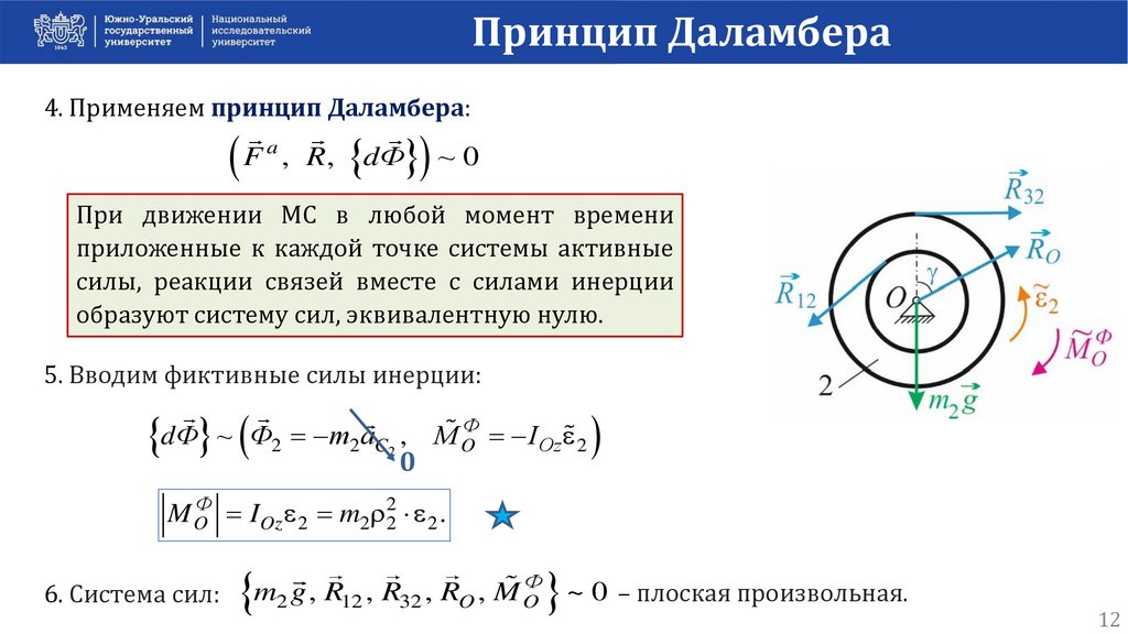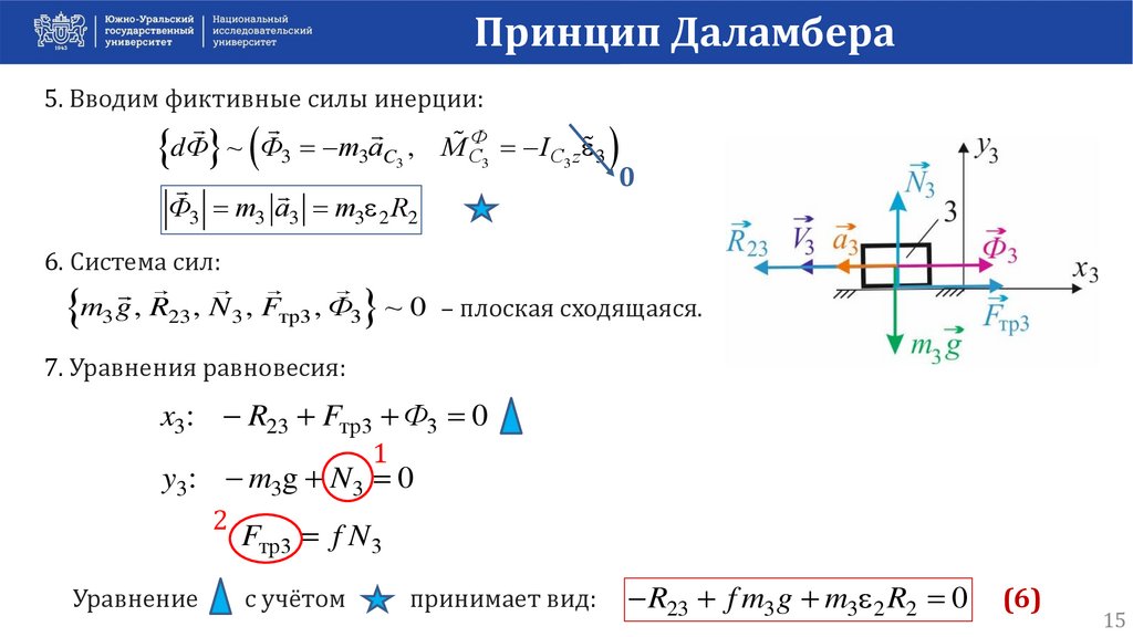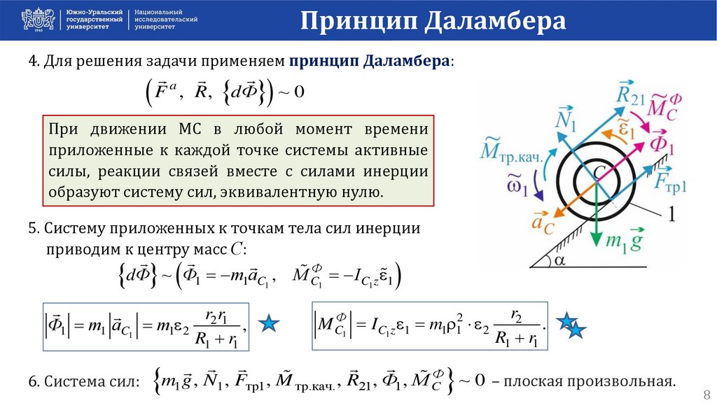 Принцип Даламбера5. Вводим фиктивные силы инерции: