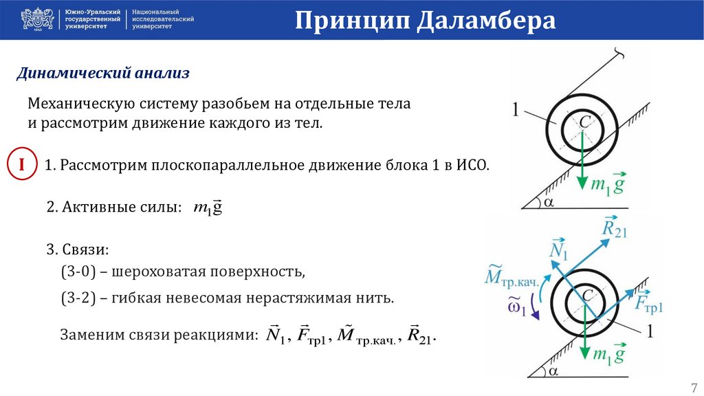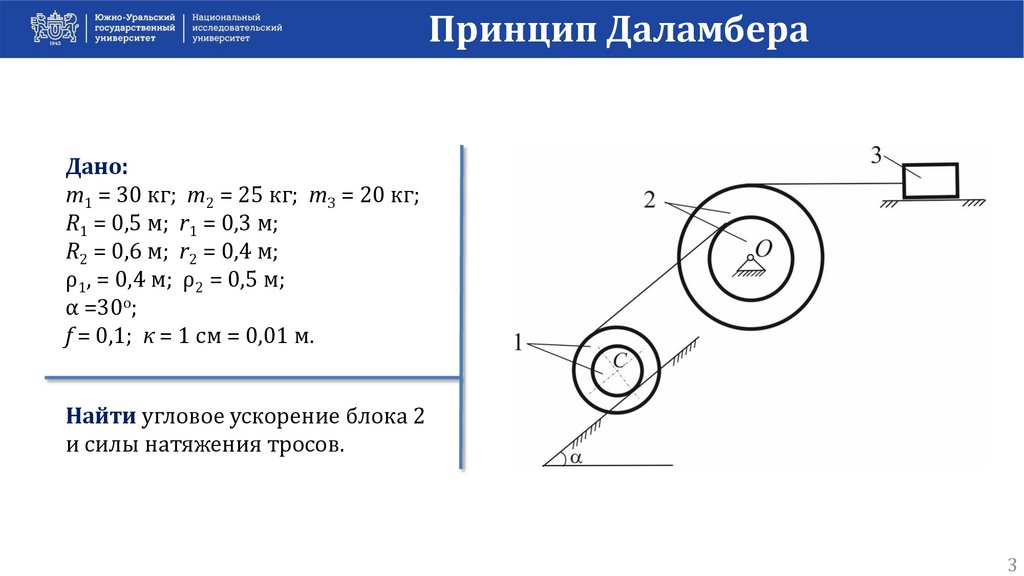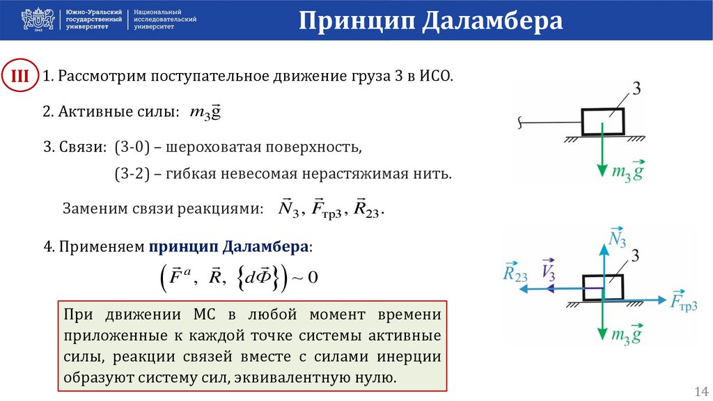 Принцип ДаламбераIII 1. Рассмотрим поступательное движение груза 3 в ИСО.