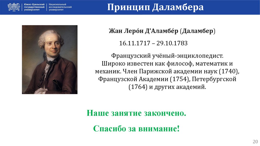 Принцип ДаламбераЖан Леро́ н Д’Аламбе́ р (Даламбер)