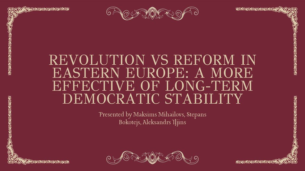 REVOLUTION VS REFORM INEASTERN EUROPE: A MORE