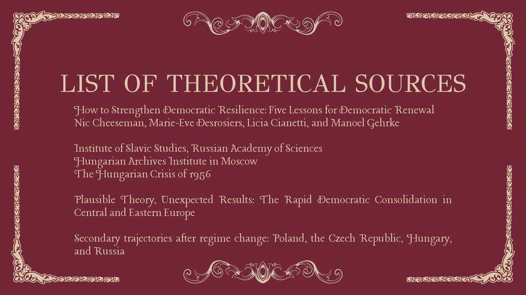 LIST OF THEORETICAL SOURCESHow to Strengthen Democratic Resilience: Five Lessons for Democratic Renewal