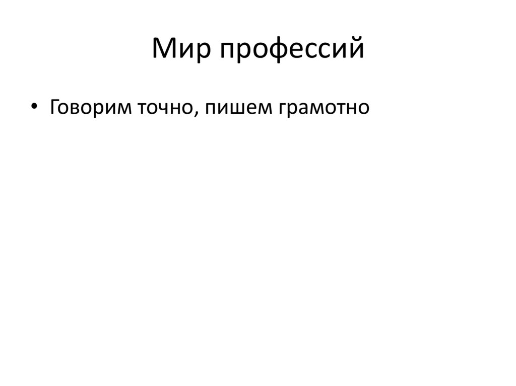 Мир профессий• Говорим точно, пишем грамотно