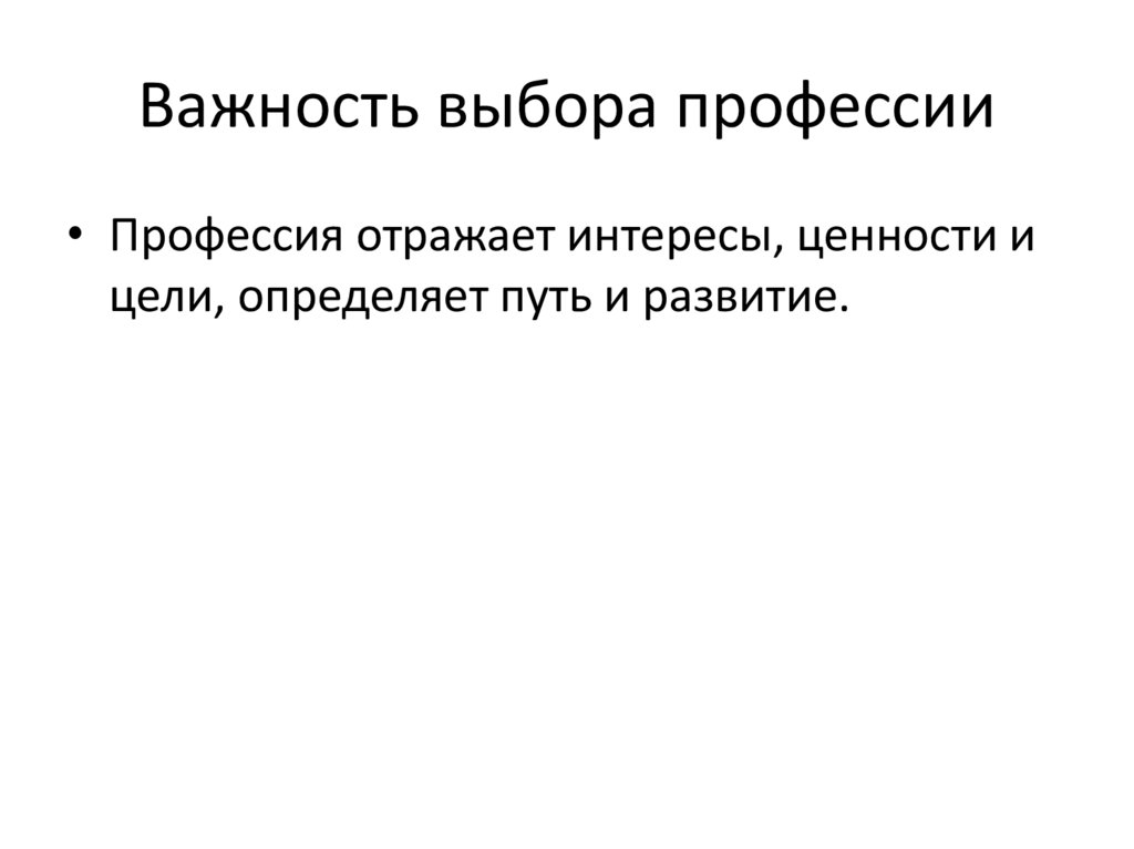 Важность выбора профессии• Профессия отражает интересы, ценности и
