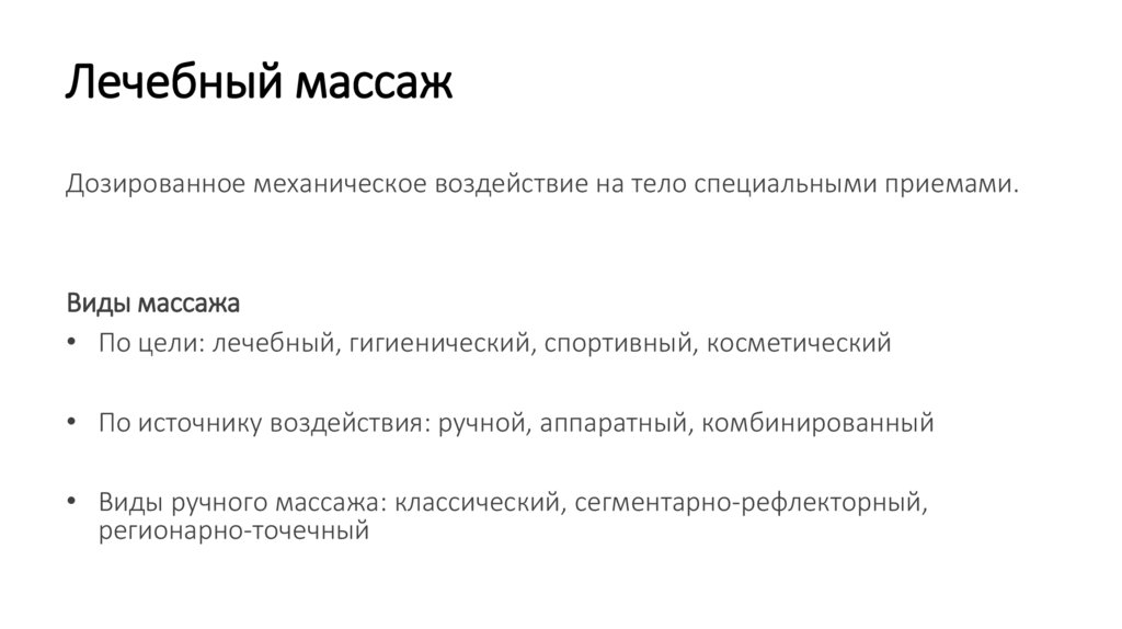 • Виды ручного массажа: классический, сегментарно-рефлекторный,