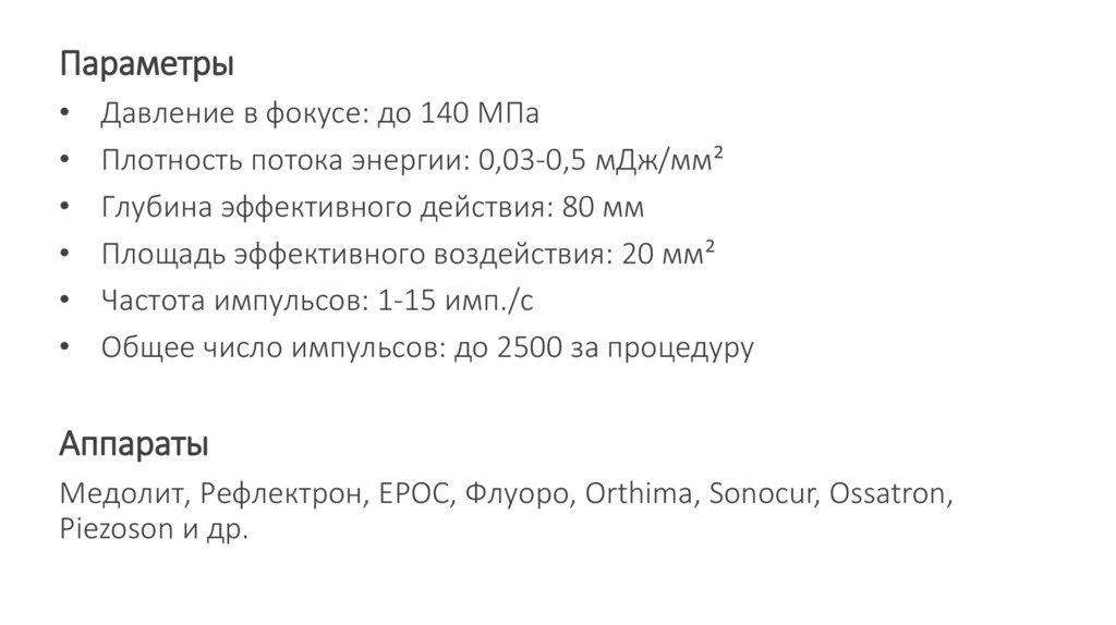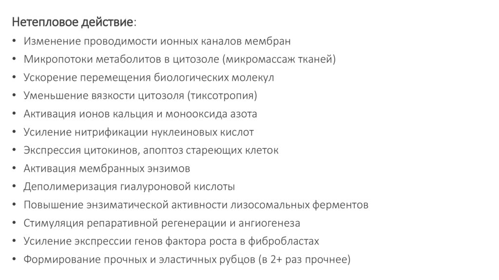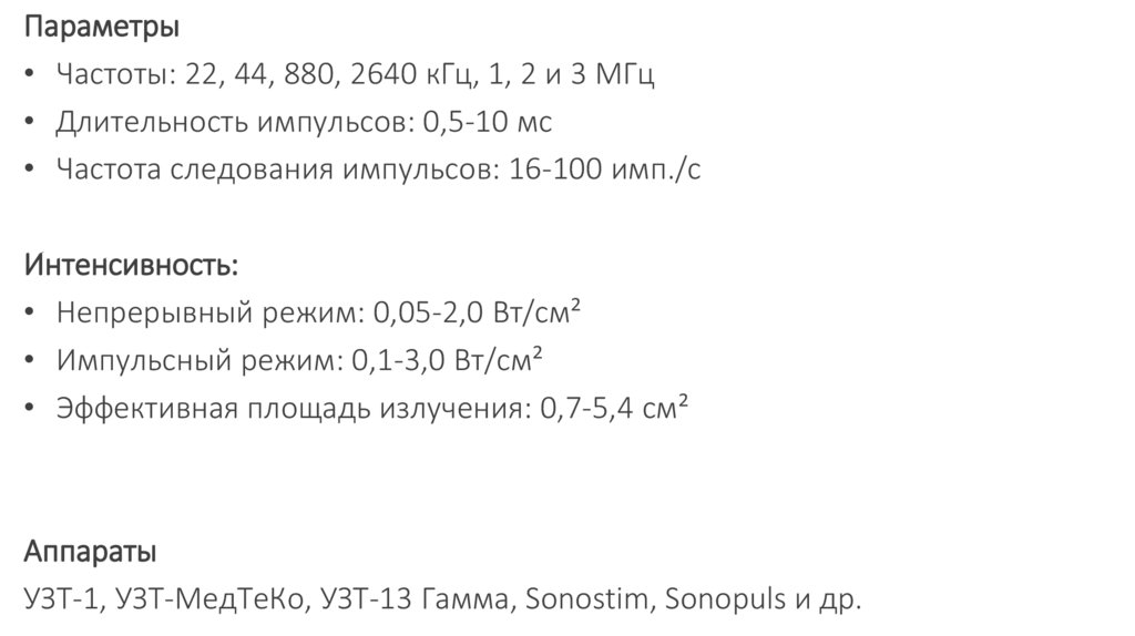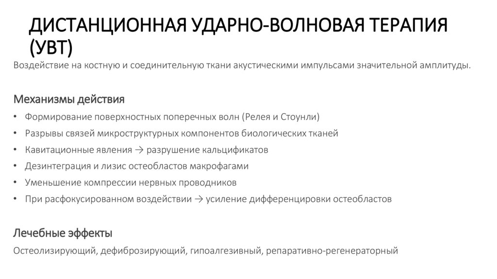 • Репаративно-регенеративный, фибромодулирующий, катаболический (низкоинтенсивная УЗТ)