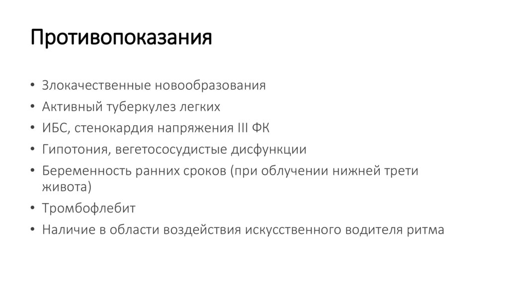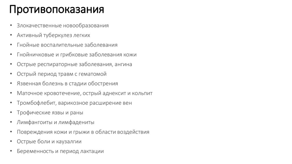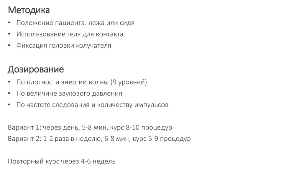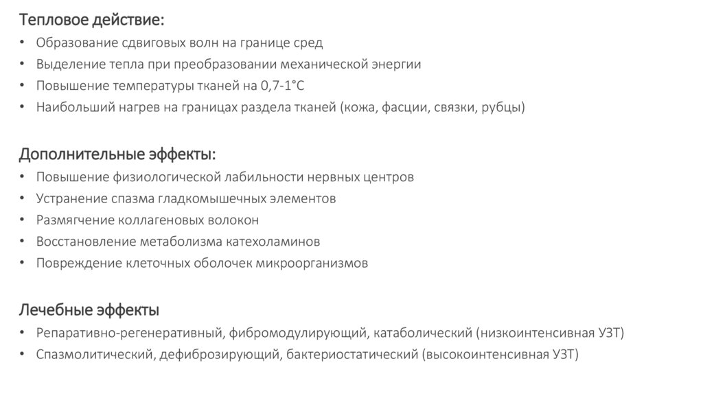 • Спазмолитический, дефиброзирующий, бактериостатический (высокоинтенсивная УЗТ)