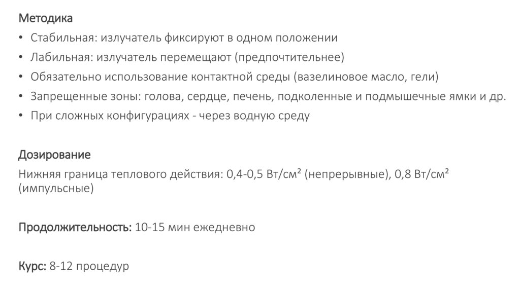 • Обязательно использование контактной среды (вазелиновое масло, гели)