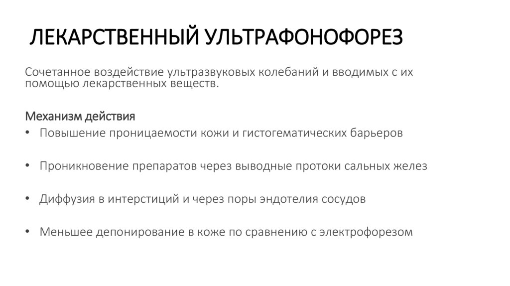 ЛЕКАРСТВЕННЫЙ УЛЬТРАФОНОФОРЕЗСочетанное воздействие ультразвуковых колебаний и вводимых с их