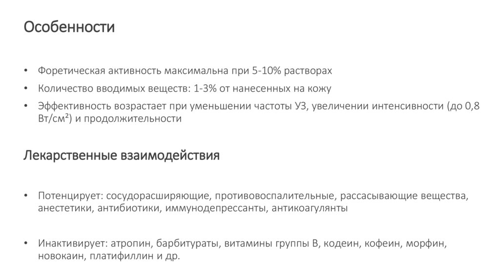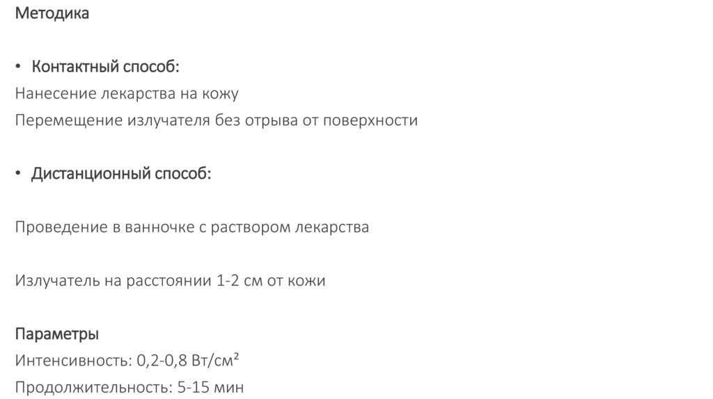 • Меньшее депонирование в коже по сравнению с электрофорезом