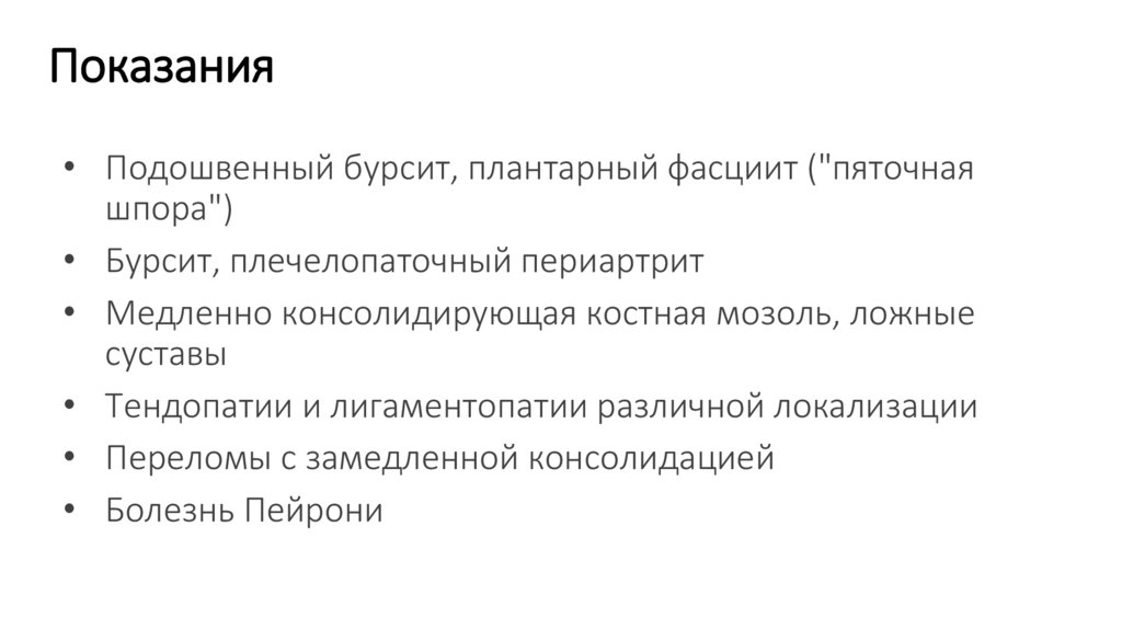 Показания• Подошвенный бурсит, плантарный фасциит ("пяточная