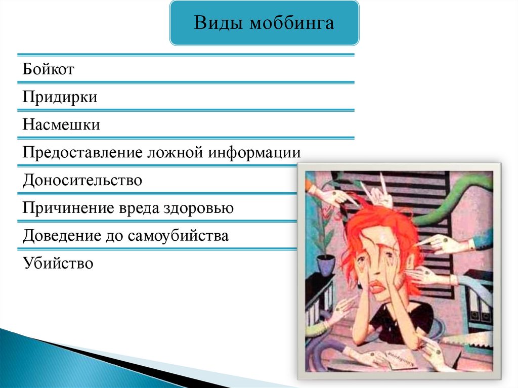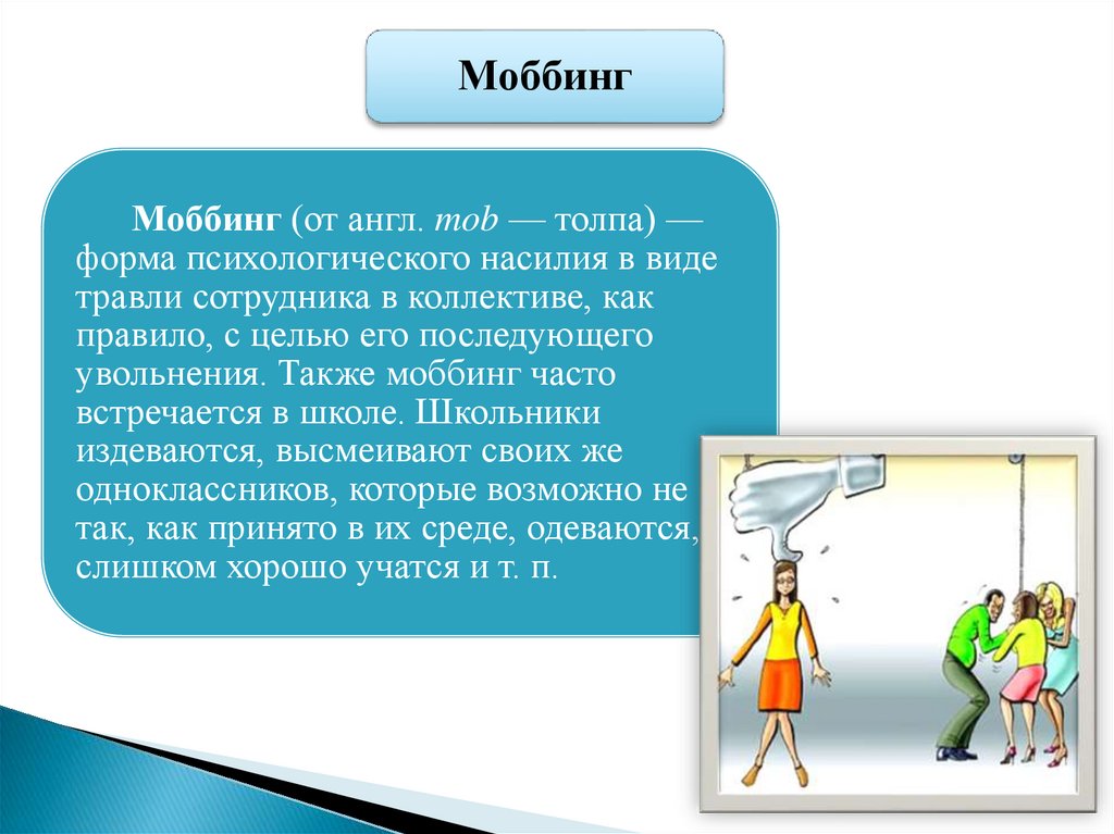 Проявления моббингаМоральное преследование.