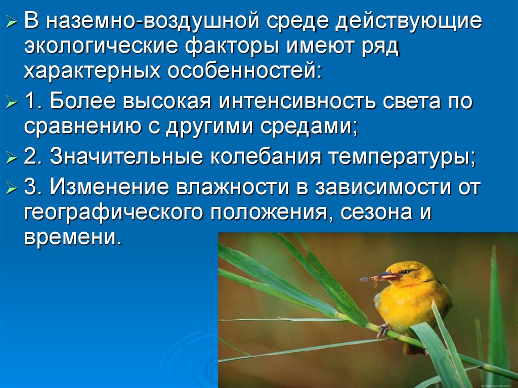 В наземно-воздушной среде действующиеэкологические факторы имеют ряд