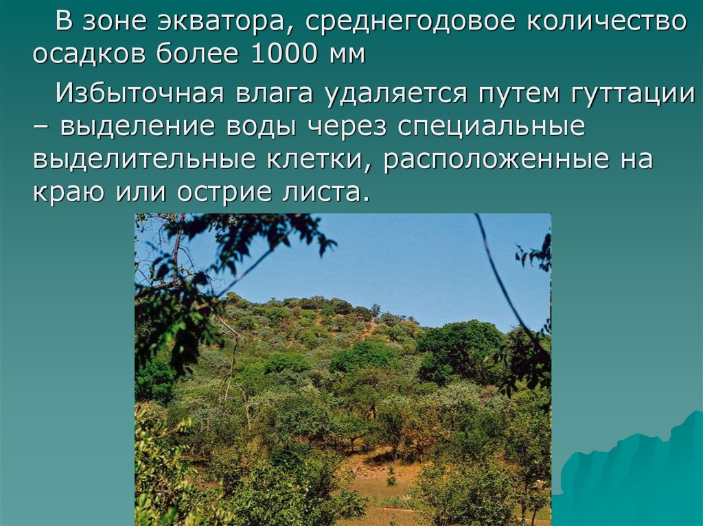 В зоне экватора, среднегодовое количествоосадков более 1000 мм