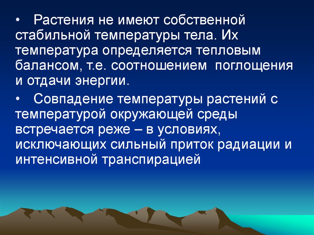 • Растения не имеют собственнойстабильной температуры тела. Их