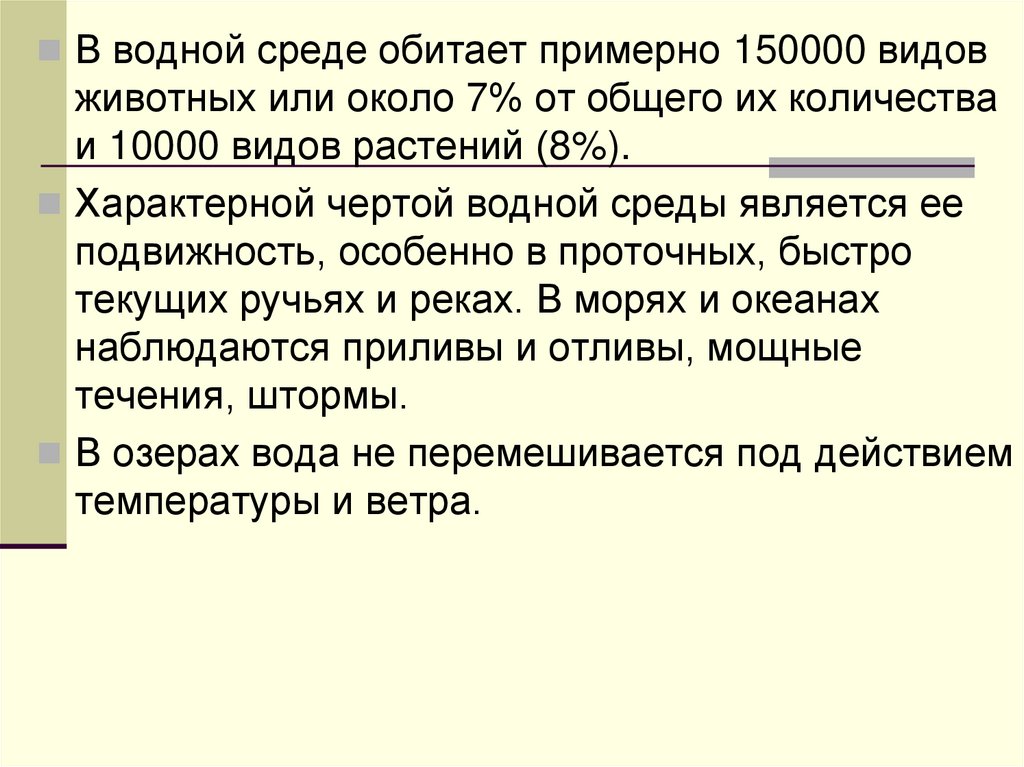 В водной среде обитает примерно 150000 видовживотных или около 7% от общего их количества